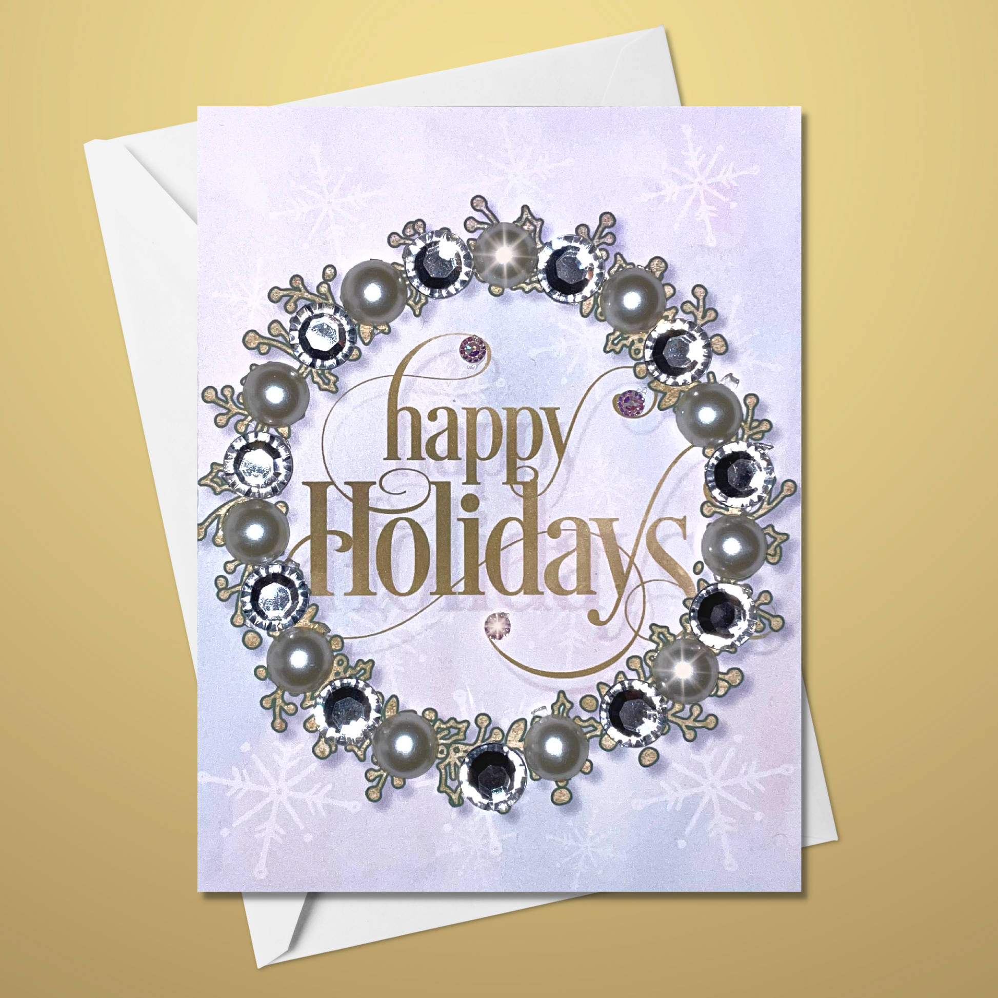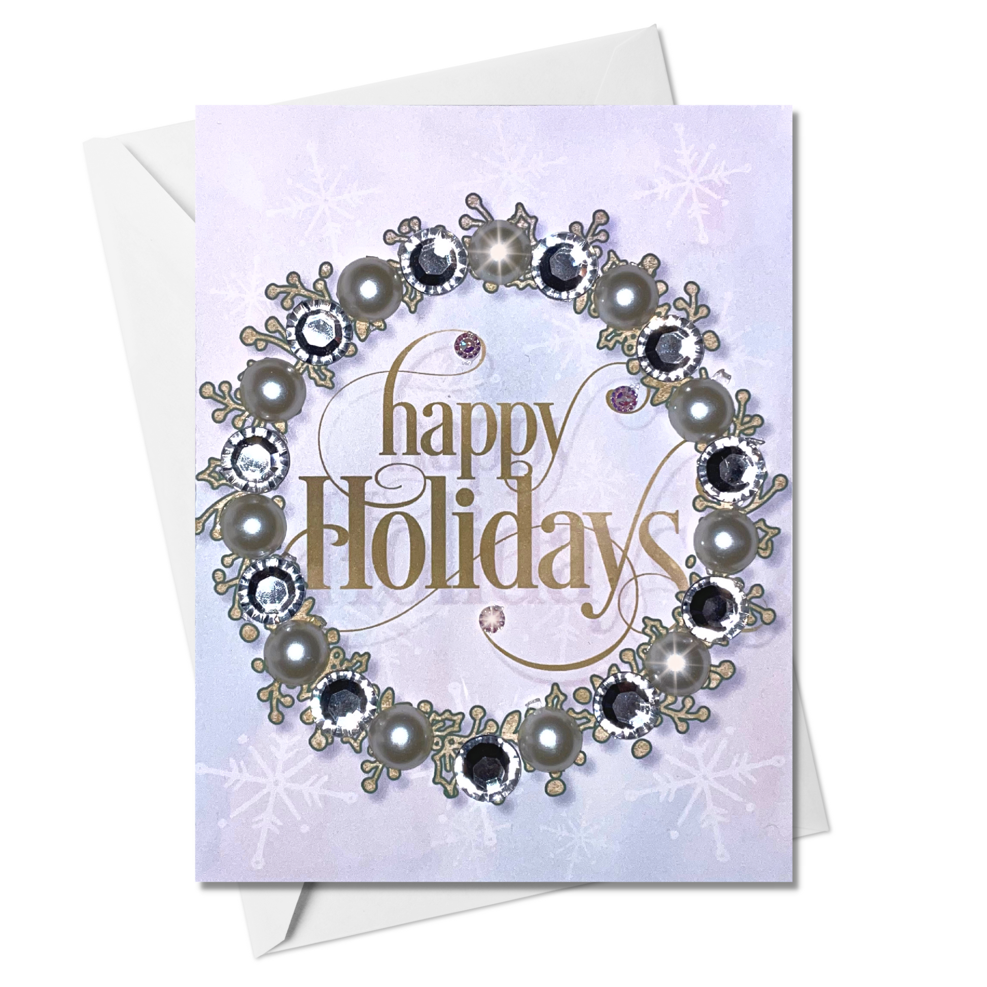 These cards are hand made and one of kind, so what you see may not be what you'll get. Each card is made with its own unique flare. Jewel style, design and colour may vary. They are blank inside so you can add your own personal touch!