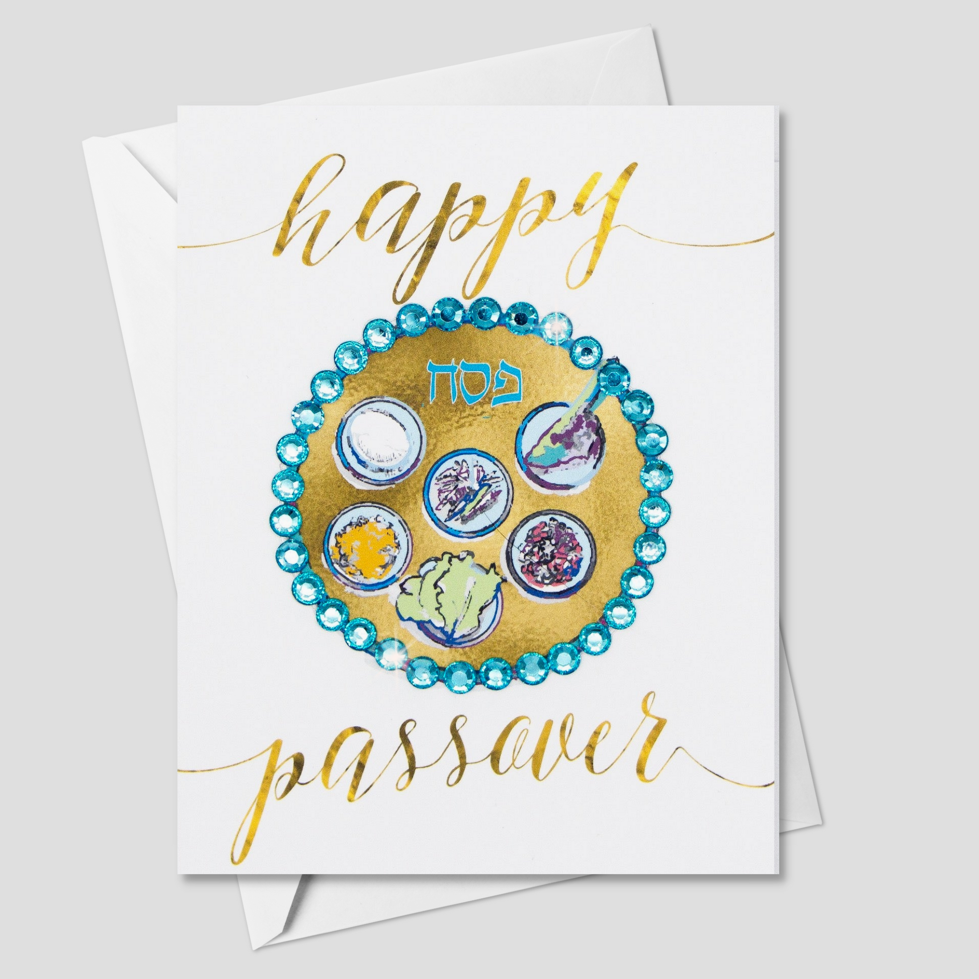 Happy Passover Gold and Blue Sedar Plate Greeting Card