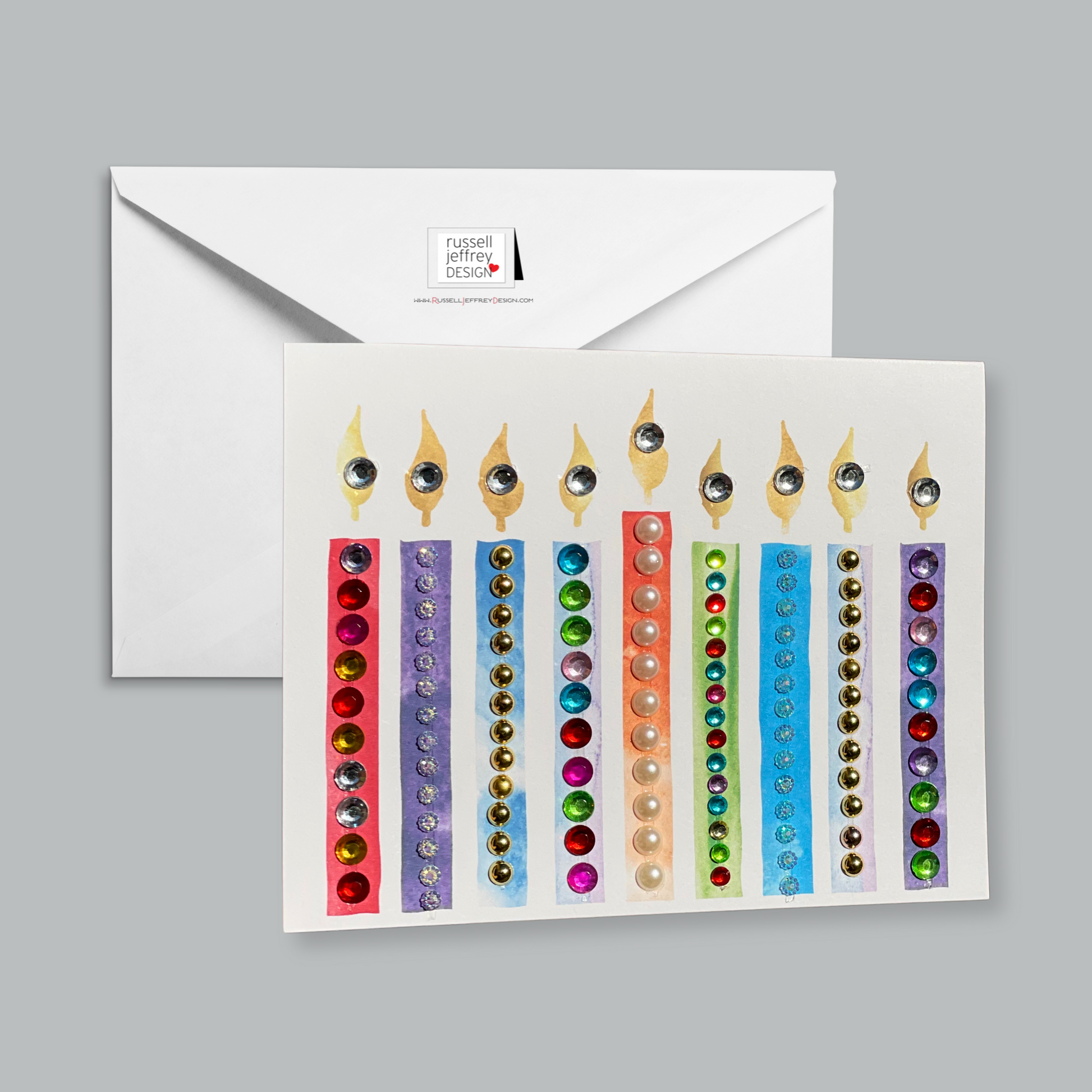 These cards are hand made and one of kind, so what you see may not be what you'll get. Each card is made with its own unique flare. Jewel style, design and colour may vary. They are blank inside so you can add your own personal touch!