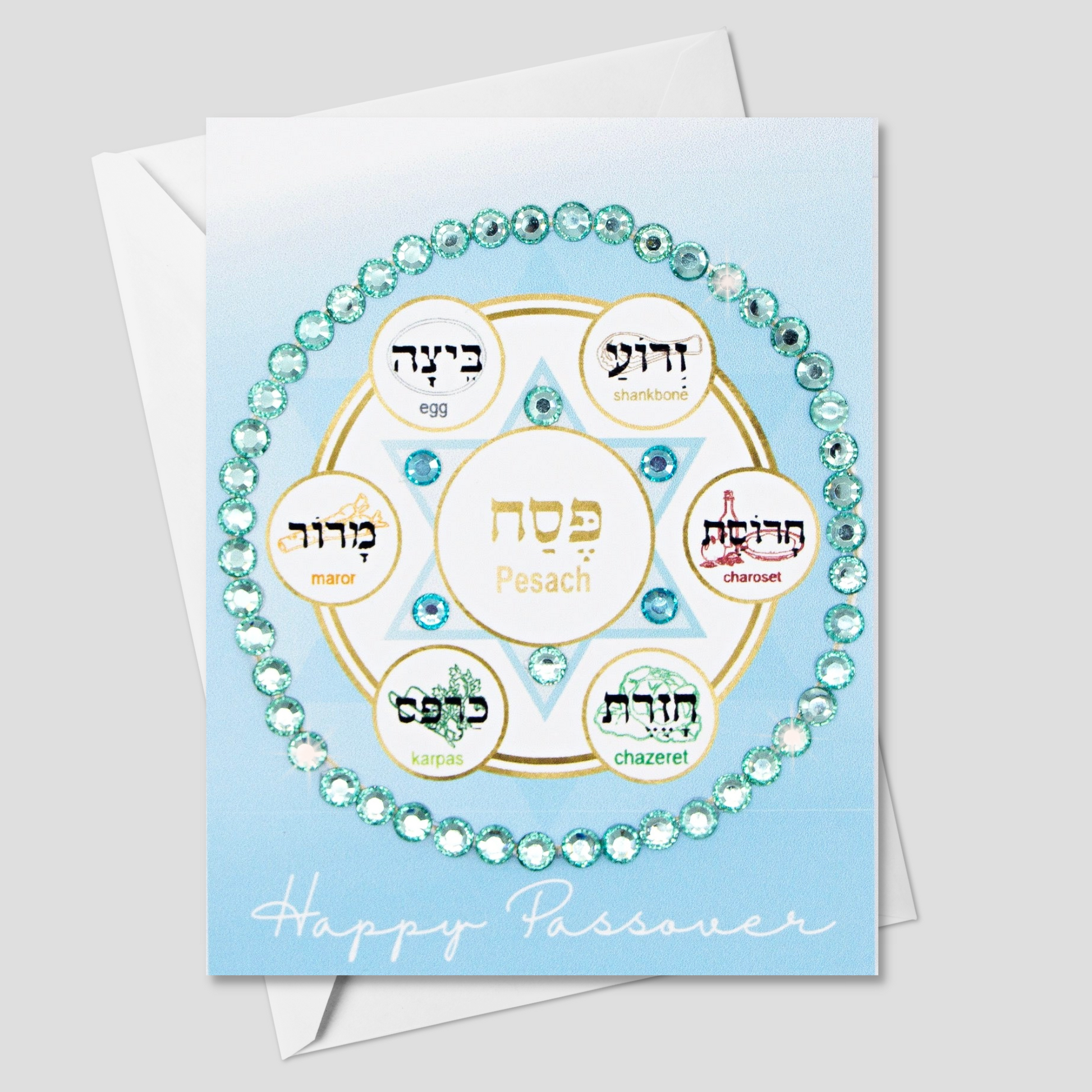 Passover Sedar Plate (Hebrew) Blue Greeting Card
