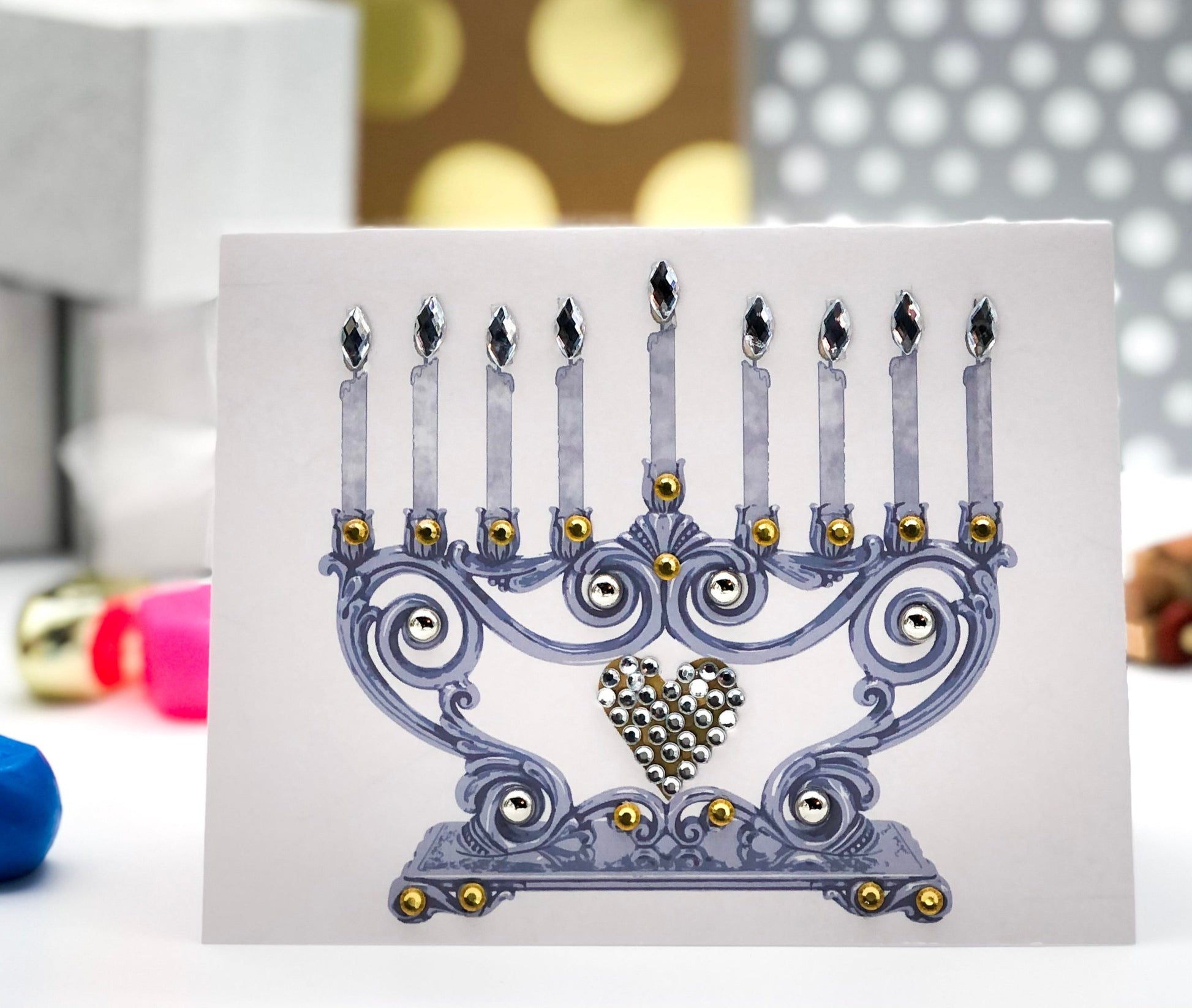 Silver Menorah Greeting Card